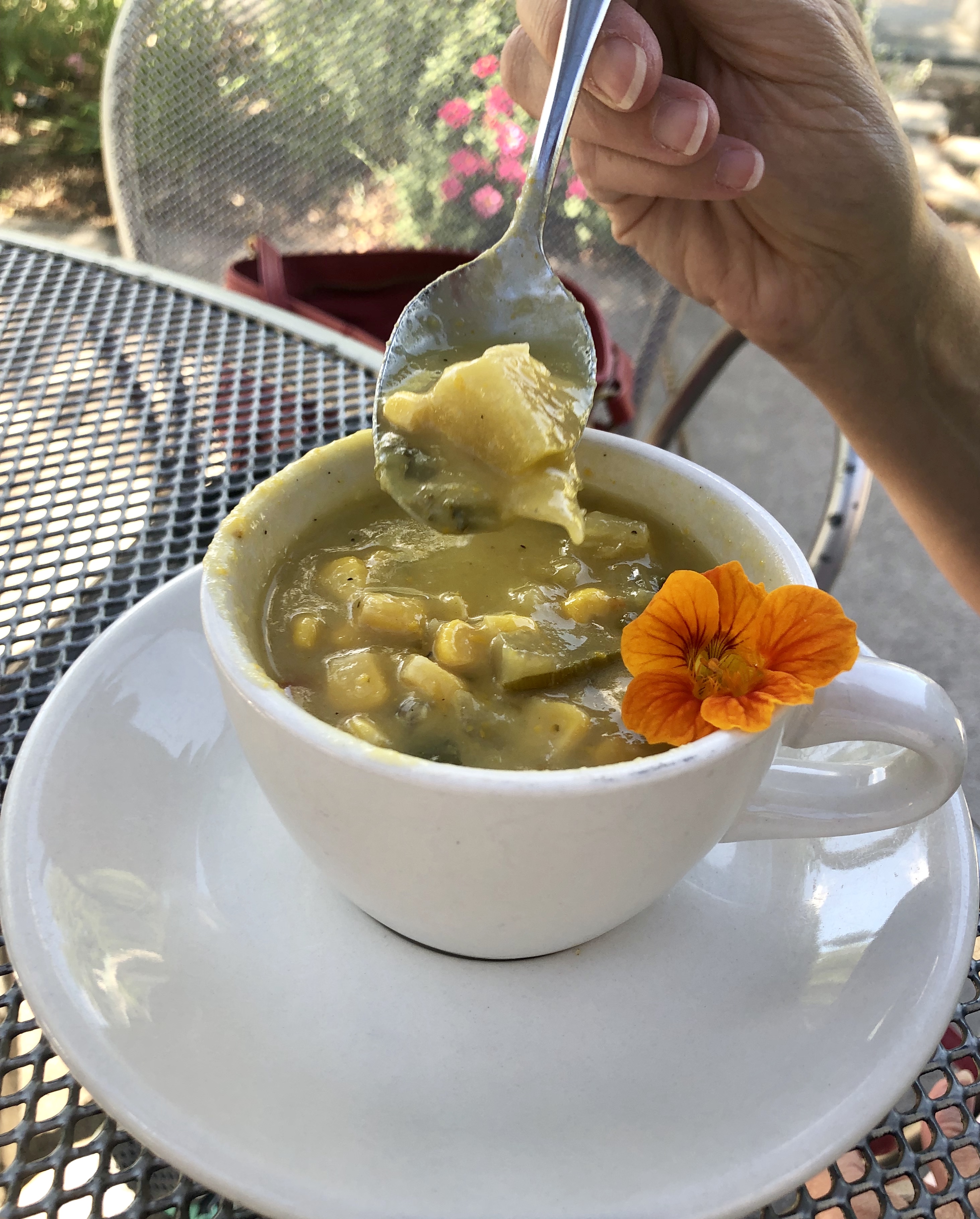 In addition to helping me clean my plate, my mom also ordered the Sweet Corn and Summer Squash Soup. She said it was good but next time she won’t order a soup that has corn in it. Lol.