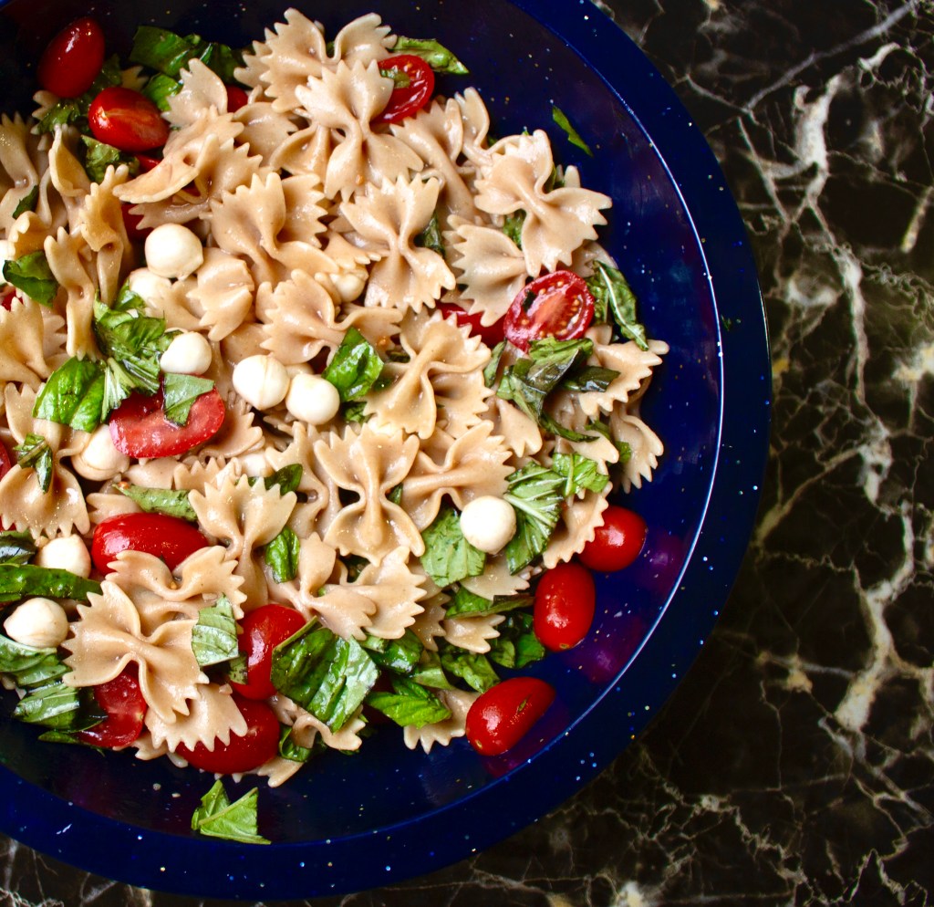 I love pizza. Why do I love pizza? Probably because it’s main components are cheese and carbs. So why not switch up my fav food to something that is sorta of similar to pizza –> caprese. Now let’s add in some pasta because carbs are life, literally.